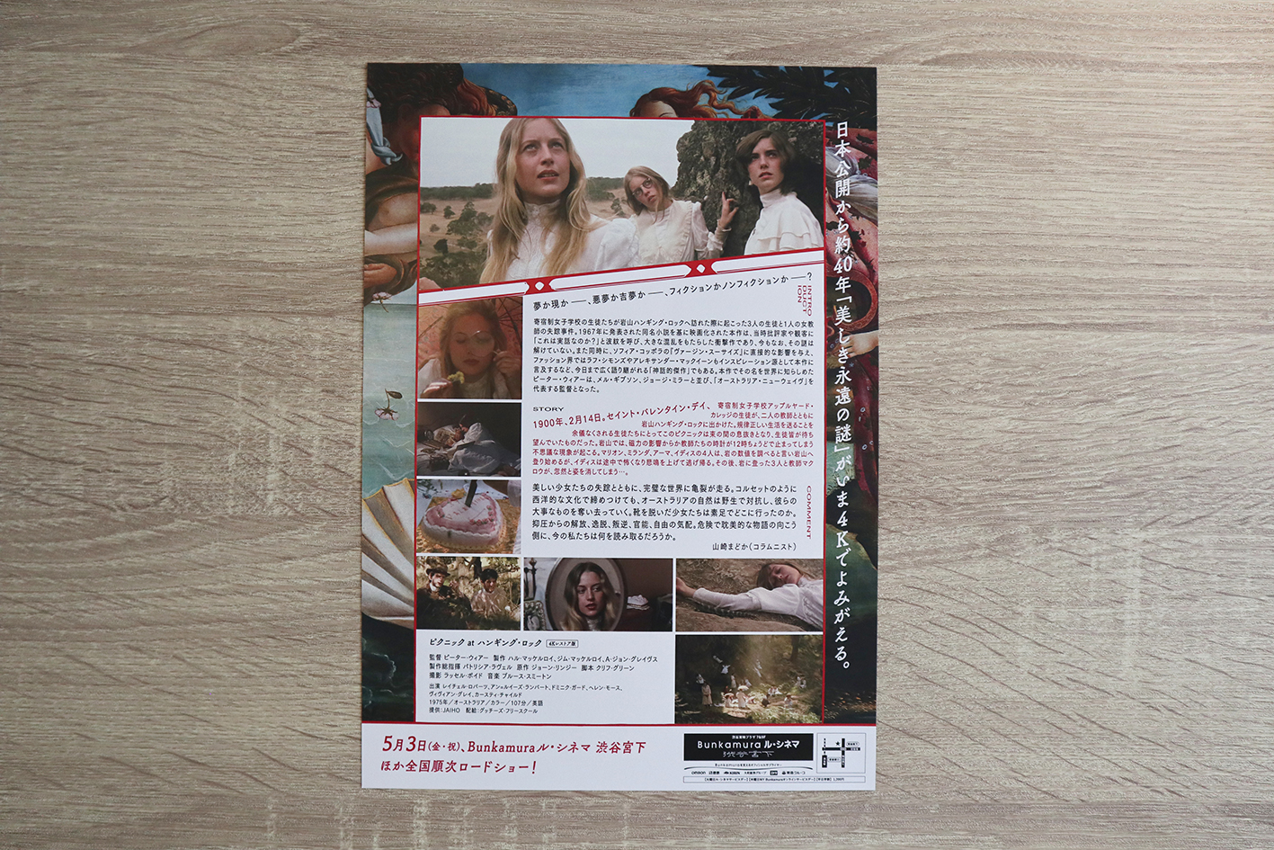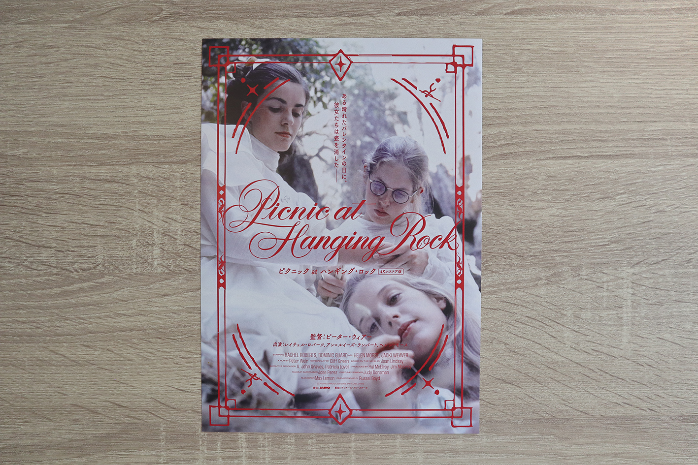 映画『ピクニックatハンギング・ロック』の日本語版ポスター・フライヤー、劇場特典のステッカーなどを制作しました。 1986年に日本初公開されてから、およそ30年ぶりに4Kレストアされての再上映。